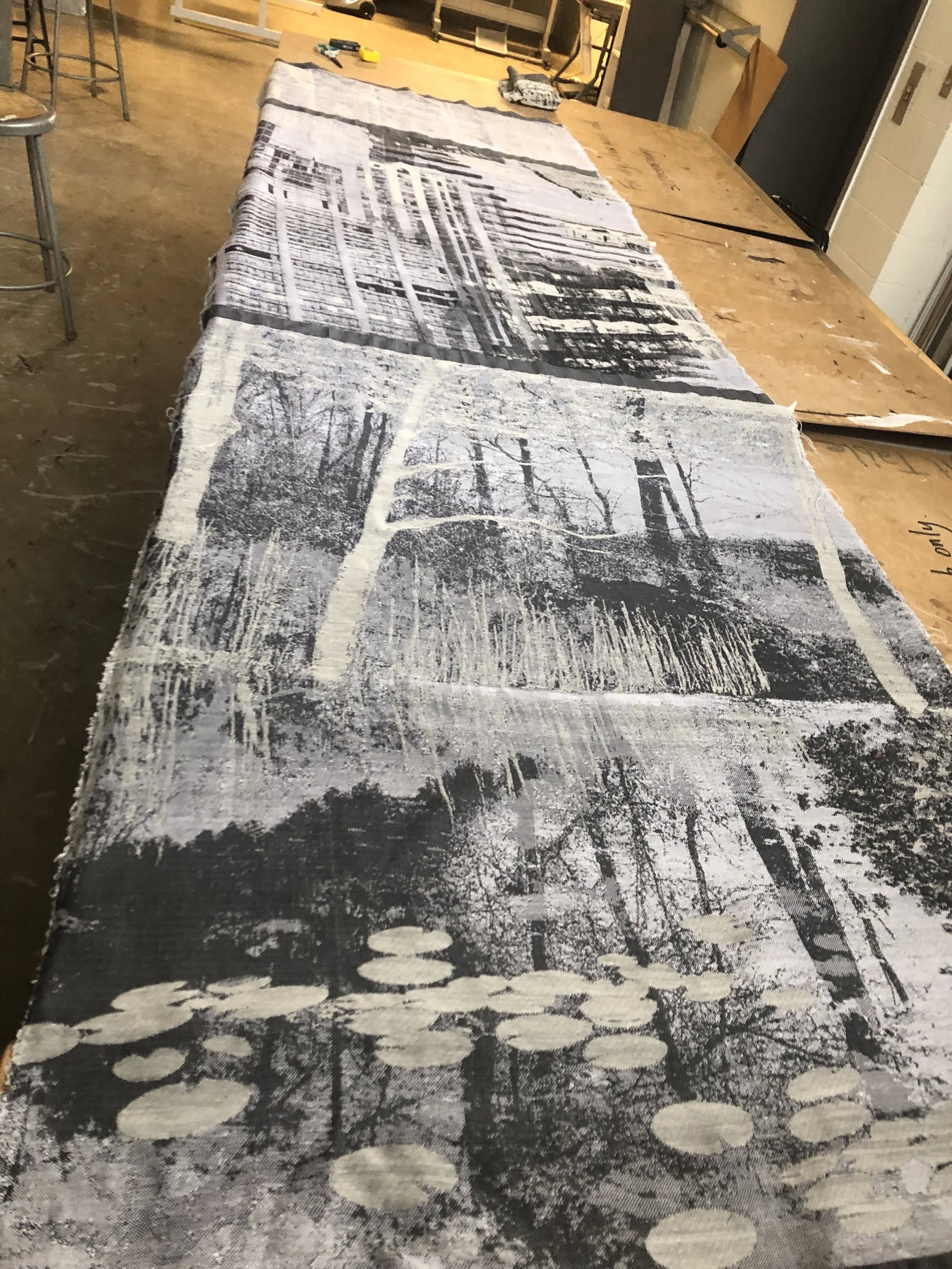 Screen print on cotton, canvas, linen, and synthetic fabric